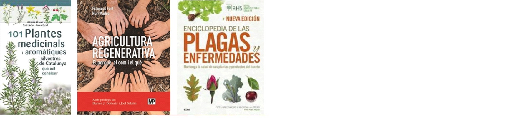 GROS, Michel. Llunari : calendari lunar per l’hort i el jardí ecològics i també per mantenir la salut. Castellvell : Artús Porta Manresa, 2023. 63.19 Gro MARTÍNEZ, Pere. El jardí de la salut. Conesa : Ushuaia, 2022. 63.51 Mar MEDINA, F. Xavier. Consumo alimentario y sostenibilidad : ¿hacia una sociedad sostenible? Barcelona : mra ediciones, 2021. 613.2 Con