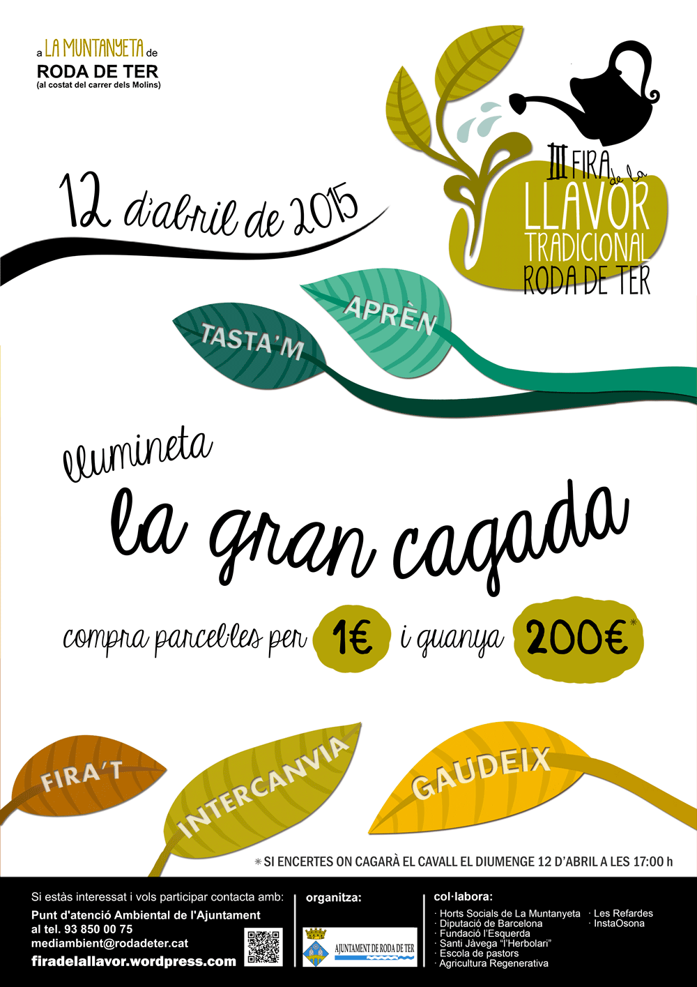 Un de les activitats que es van realitzar durant la III Fira de la Llavor Tradicional de Roda de Ter va ser la Gran Cagada. Aquesta activitat de gaudi va tenir lloc el diumenge a la tarda i va aixecar gran expectació entre els assistents a la fira.